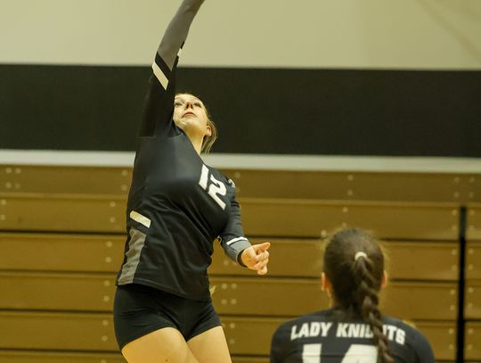 In varsity action, the Lady Knights swept the Sidewinders in three sets, 25-22, 25-18 and 25-17, keeping the energy high in the Round Mountain gym.